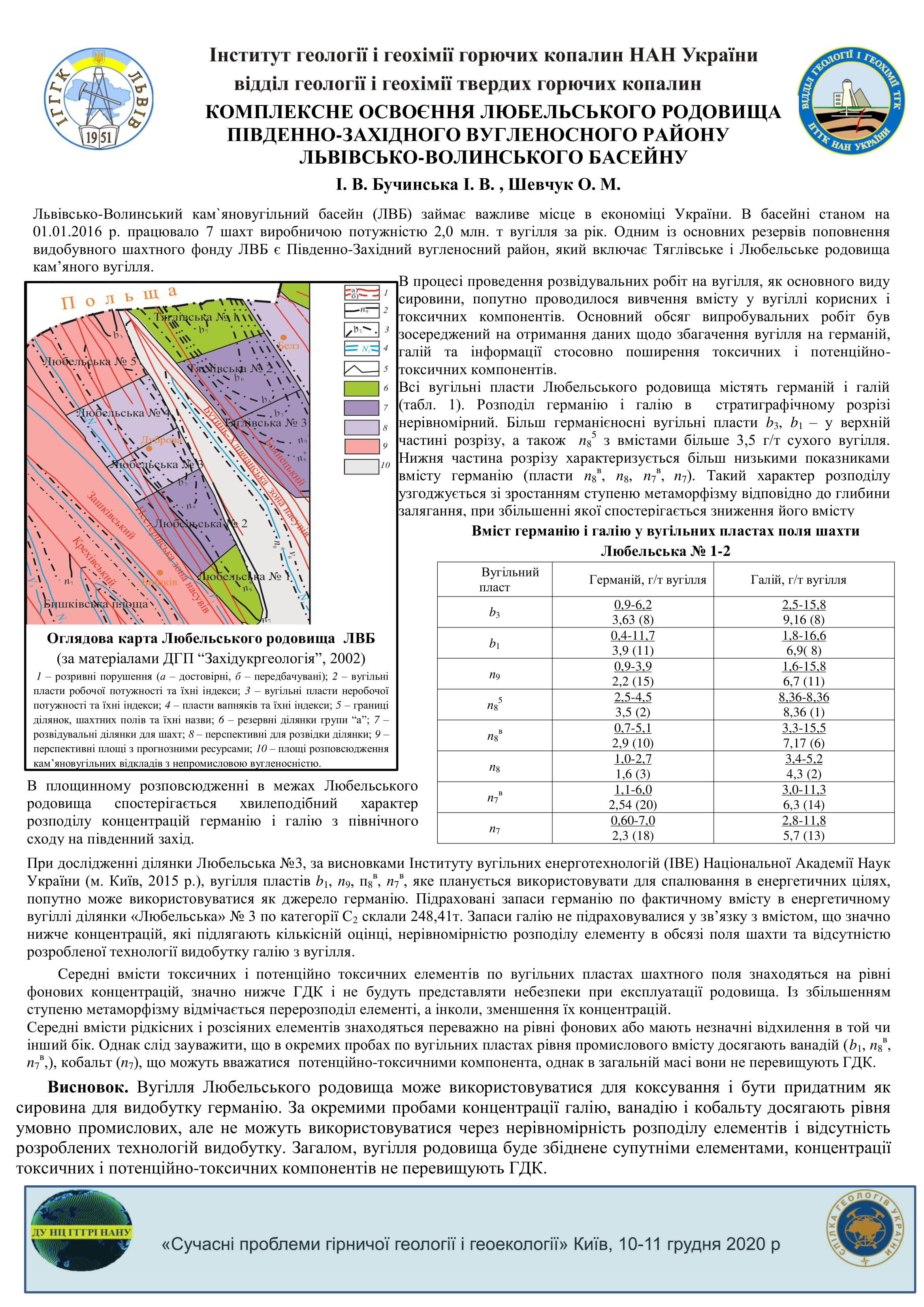 Конференція "Сучасні проблеми гірничої геології і геоекології" відбулася у Києві 10-11 грудня 2020 року.