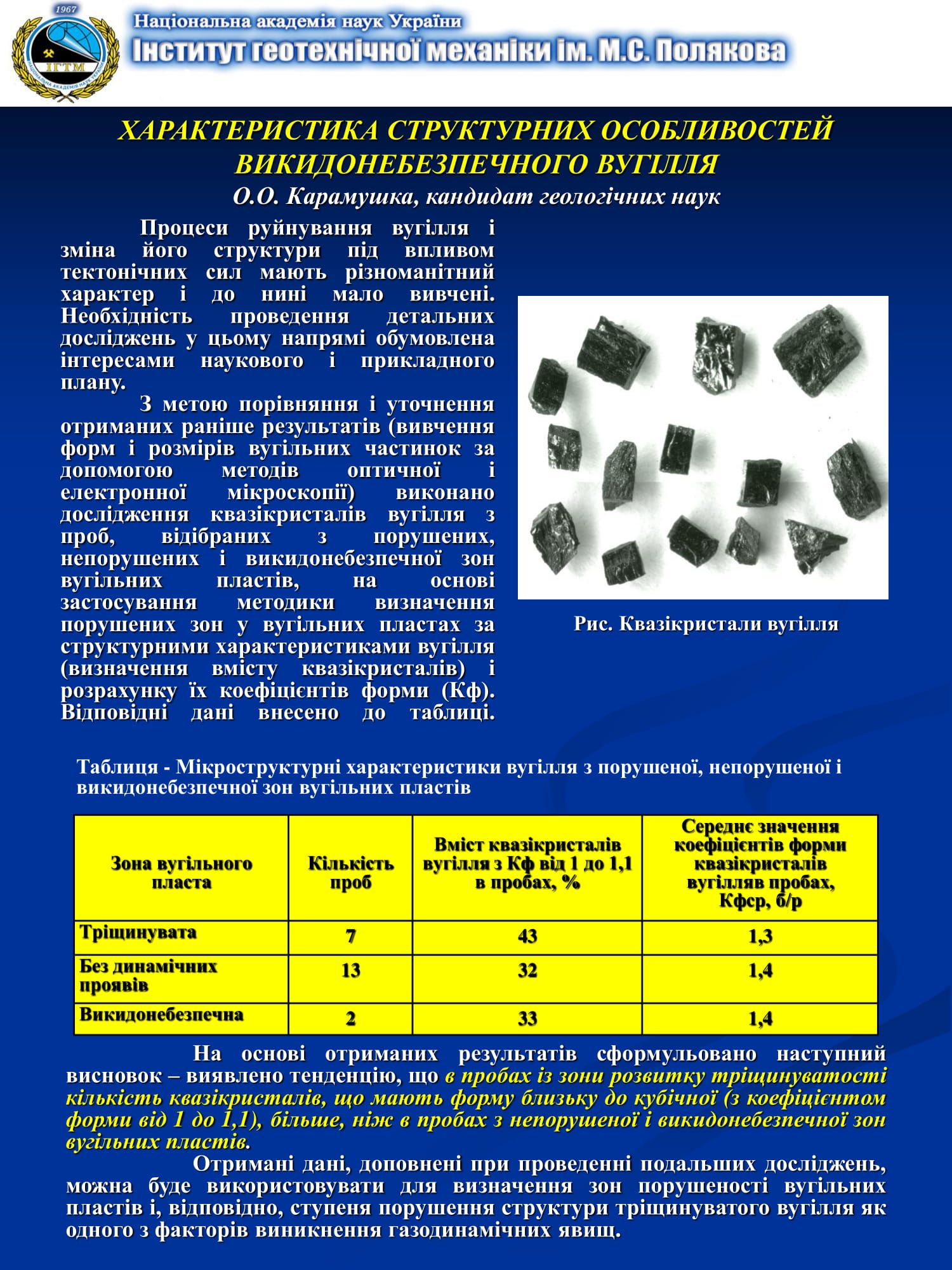 ХАРАКТЕРИСТИКА СТРУКТУРНИХ ОСОБЛИВОСТЕЙ ВИКИДОНЕБЕЗПЕЧНОГО ВУГІЛЛЯ