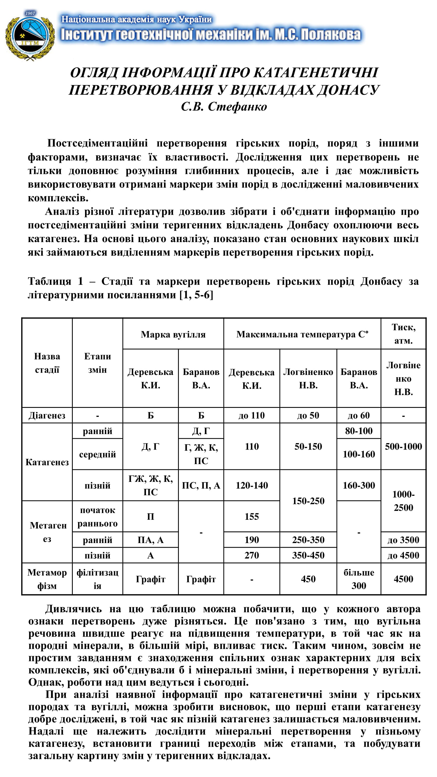 ОГЛЯД ІНФОРМАЦІЇ ПРО КАТАГЕНЕТИЧНІ ПЕРЕТВОРЮВАННЯ У ВІДКЛАДАХ ДОНБАСУ